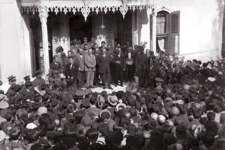 Fotoaltı: Cumhurbaşkanı Mustafa Kemal Paşa’nın, 28 Eylül 1925 Tarihinde Hünkâr (Cumhuriyet) Köşkü Önünde Halka Hitaben Yaptığı Konuşması…