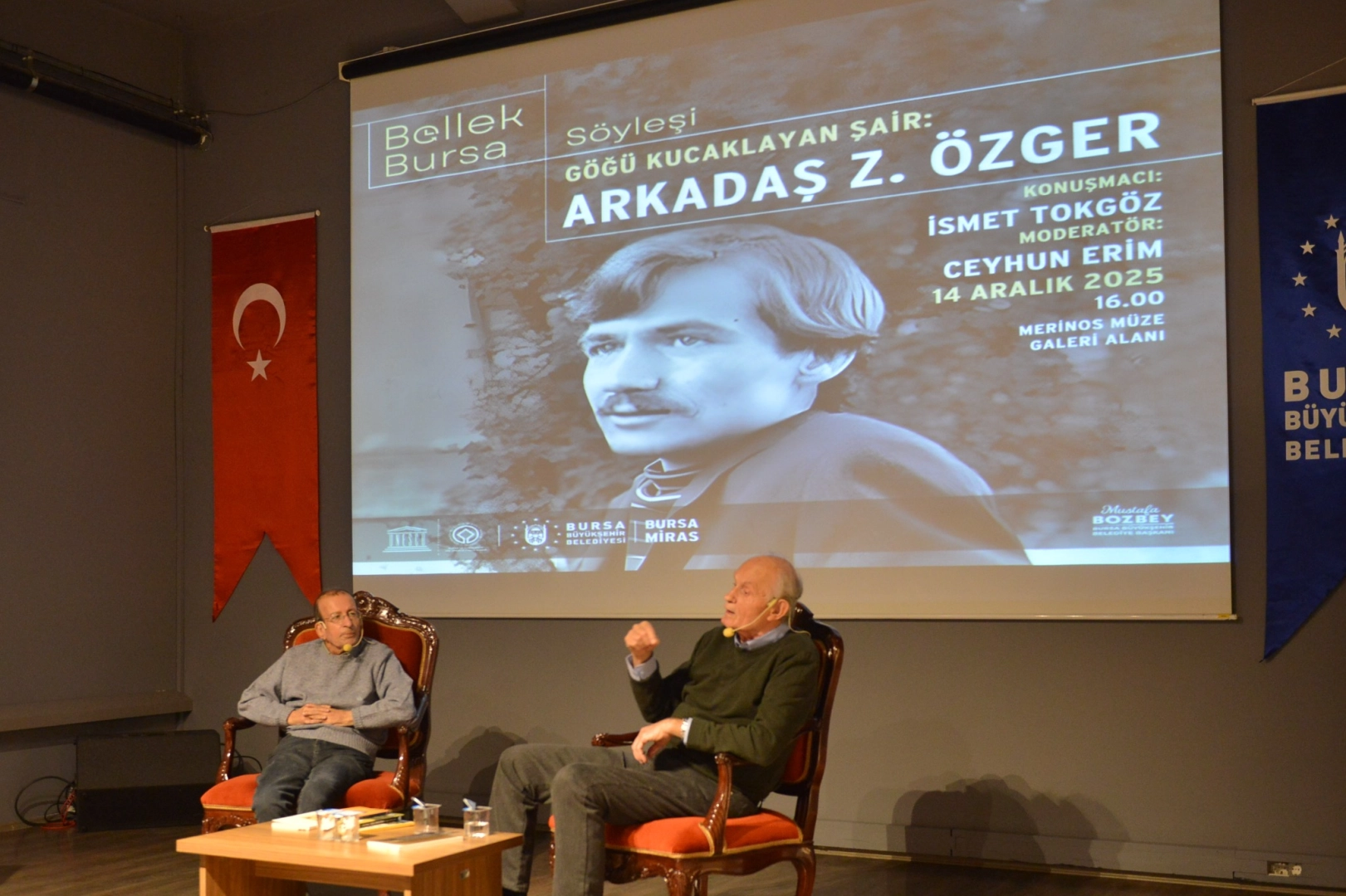 Bursa Büyükşehir Belediyesi Kent Tarihi ve Tanıtımı Dairesi Başkanlığına bağlı Kent Tarihi Araştırmaları ve Arşiv Şube Müdürlüğü tarafından başlatılan ‘Bursa Bellek-Kent Söyleşileri’ ile Bursa’da doğmuş, büyümüş veya hayatının bir kısmını Bursa’da geçirmiş sanatçıların kent anıları kayıt altına alınıyor. Her ay farklı bir sanatçının konuk edildiği söyleşi, bu ay Türk şiirinin özgün ve etkili isimlerinden Arkadaş Zekai Özger anısına düzenlendi. Etkinliğe, Büyükşehir Belediyesi Başkanvekili Mehmet Aydın Saldız, Kent Tarihi ve Tanıtımı Dairesi Başkanı Güney Özkılınç, Büyükşehir Belediyesi bürokratları ve sanatseverler katıldı.