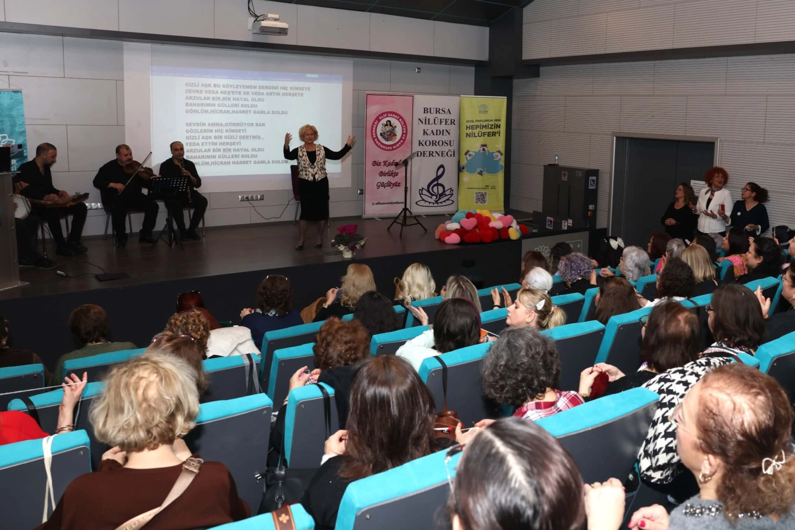 Nilüfer Belediyesi, Elif Sanat Kültür ve Kadın Dayanışma Derneği ile Nilüfer Kadın Korosu iş birliğiyle düzenlenen “Kalpten İlmekler İyilik Sahnesinde” etkinliği, Karaman Dernekler Yerleşkesi’nde gerçekleştirildi. Etkinlik boyunca kadınlar, hem şarkılara katıldı, hem de örgü ördü. Proje kapsamında kadınların ördüğü atkı, bere ve yastıklar Nilüfer Belediyesi’nin huzurevleri ve Nilüfer Belediyesi Lions & Ercan Dikencik Alzheimer Hasta Konuk Evi sakinlerine gönderilecek.