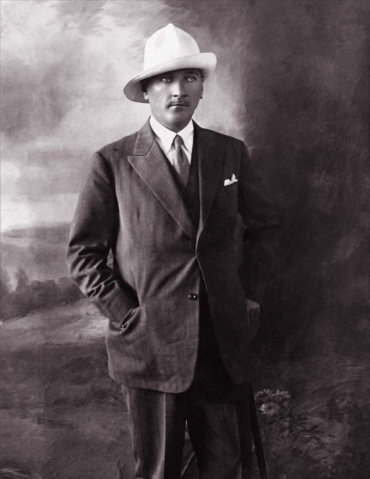 Foto altı: Gazi Paşa 1925 Kastamonu'da Panama şapkasıyla)