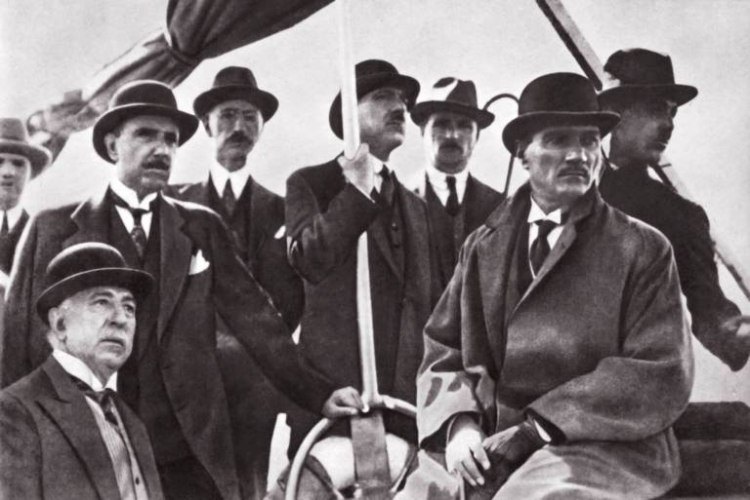 Fotoaltı: Reşit Paşa Gemisi’nde Atatürk ve beraberindekiler)
