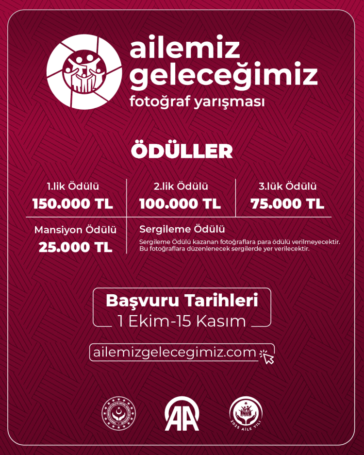 Aile ve Sosyal Hizmetler Bakanlığı, AA işbirliğiyle "Ailemiz Geleceğimiz Fotoğraf Yarışması" düzenliyor. Cumhurbaşkanı Erdoğan'ın 2025'i "Aile Yılı" ilan etmesinin ardından gerçekleşecek yarışmada, ailenin modern tehlikelere karşı güçlendirilmesi hedefleniyor. Katılım ücretsiz.