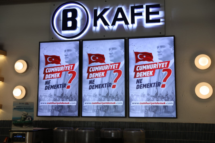 Bu arada 29 Ekim Cumhuriyet Bayramı’na özel olarak kent genelindeki tüm B Kafe’lerde “Cumhuriyet Demek…” temalı kahve bardakları hazırlandı. Bursalılar, özel tasarımlı bardaklarla sıcak içeceklerin tadını çıkarırken, kendi isimlerinin yer aldığı sloganlarla Cumhuriyet coşkusunu derinden hissediyor.