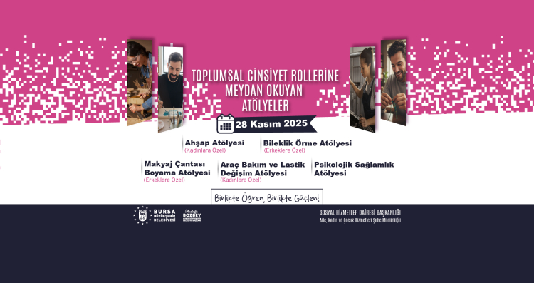 Bursa Büyükşehir Belediyesi, Kadına Yönelik Şiddete Karşı Uluslararası Mücadele Günü'nde toplumsal cinsiyet yargılarını sorgulayan atölyeler düzenliyor. Etkinliklerde eşitlikçi yaşamın teşviki ve dayanışma kültürünün güçlenmesi hedefleniyor.